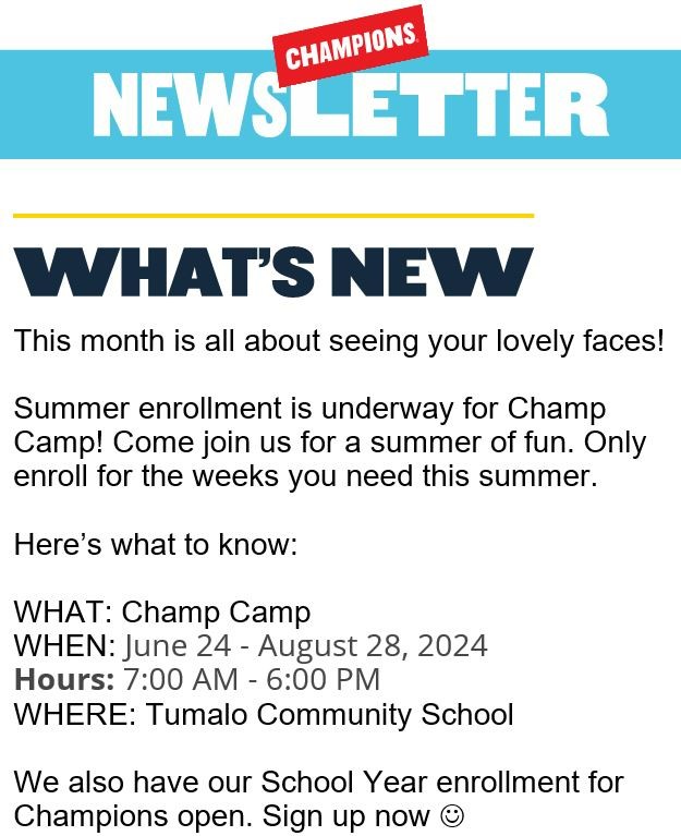 Since this is the last newsletter of the school year, here are a couple of reminders