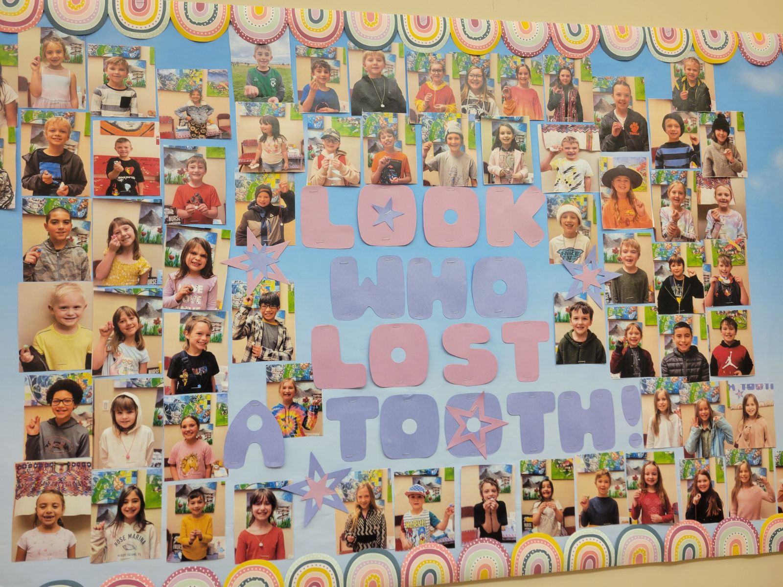 One of my joys this year has been the creation of my “Tooth Wall.” When a student loses a tooth, they bring it to me and I put their picture on my bulletin board. What started as a silly, fun idea has turned into something very sweet and special, and students in all grades come up excited to proudly display their newly changed smiles. I will do my best to send these photos home with your students at the end of the year if they are one of the lucky ones to lose a tooth at school.