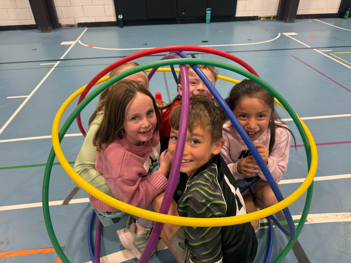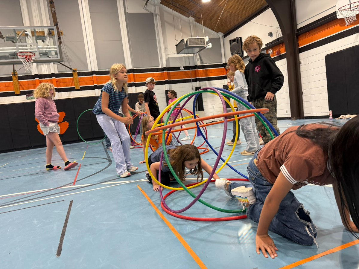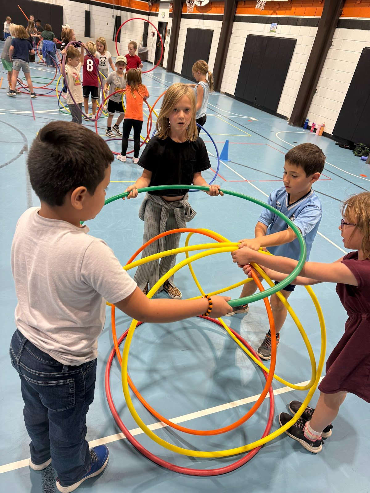 Our 2nd-5th graders learned the meaning of teamwork, fitness, frustration, and fun while completing “Hula Hut Challenges”.